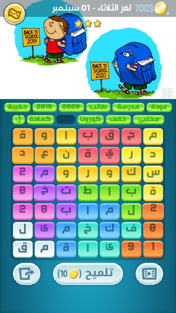 حل اللغز اليومي لكلمات كراش الثلاثاء 1 سبتمبر 2020